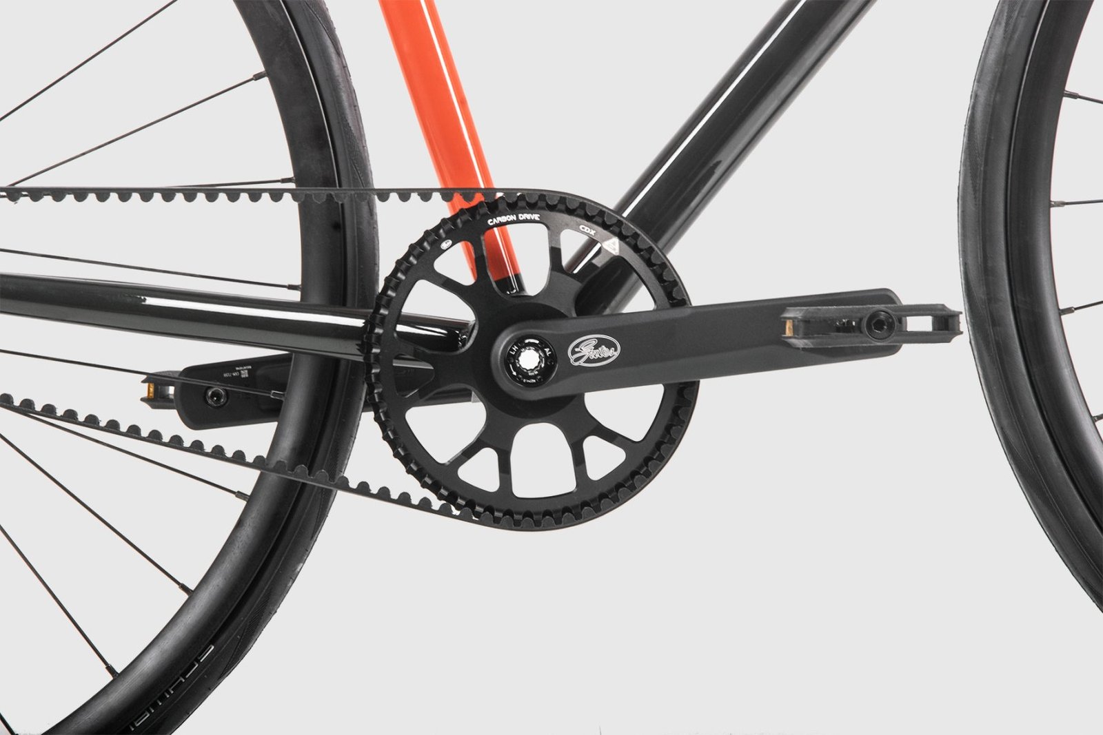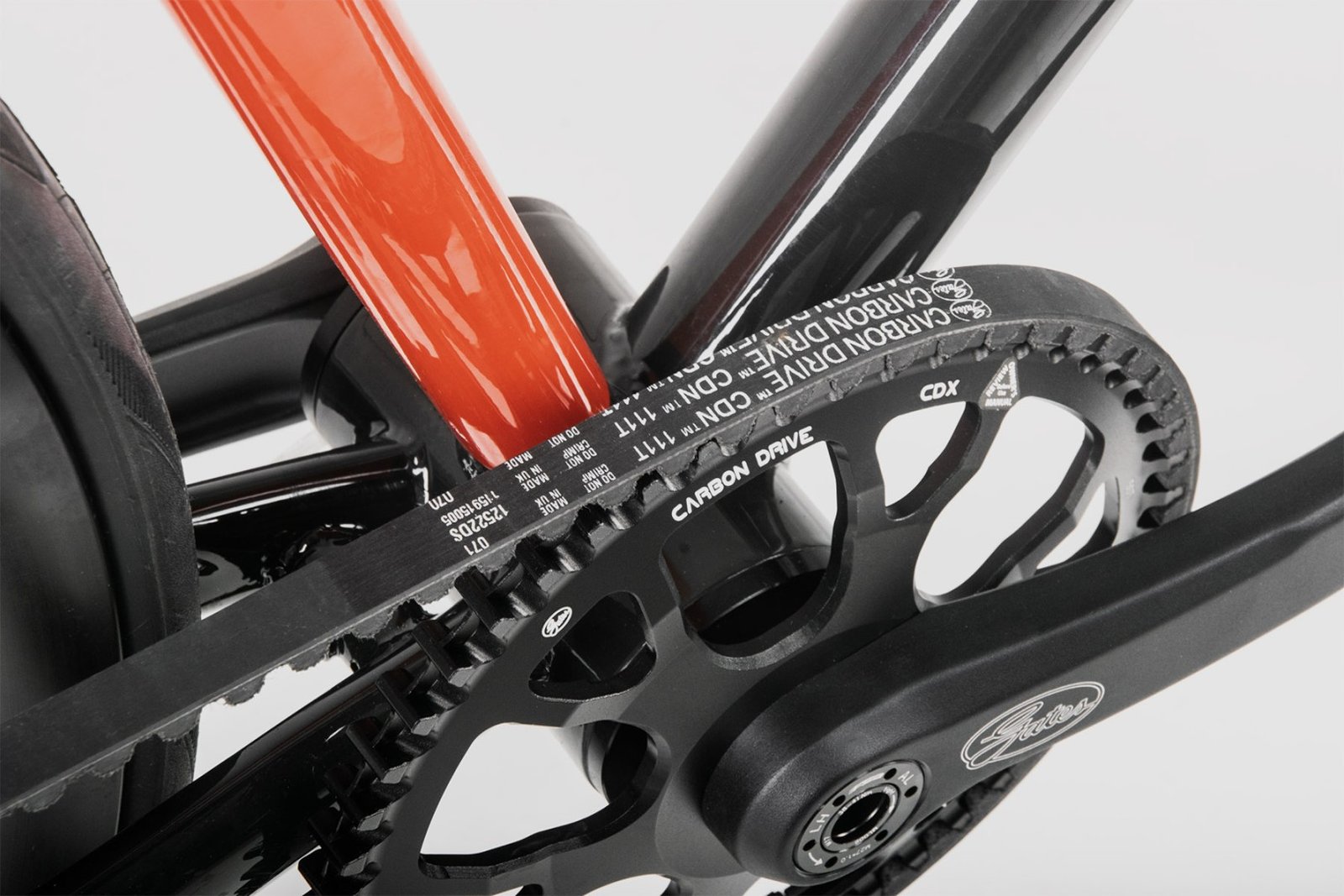 Equipped with the Possible SpinnerOne straight-pull 24h wheelset, specifically designed for belt-driven bikes. The lightweight rear hub delivers a distinctive, satisfying buzz.